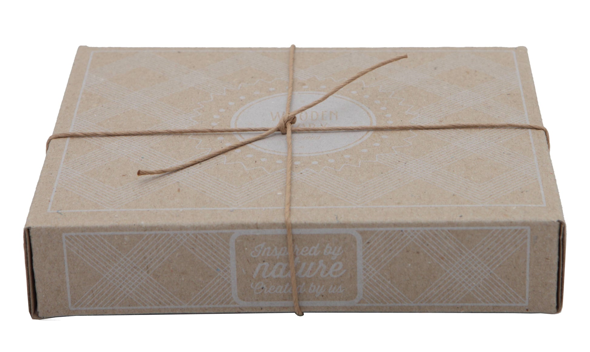 Eingewickelt in einen Baumwoll-Flanellbeutel und verpackt in einer Pappschachtel, die für die Wiederverwendung oder das einfache Recycling ausgelegt sind.