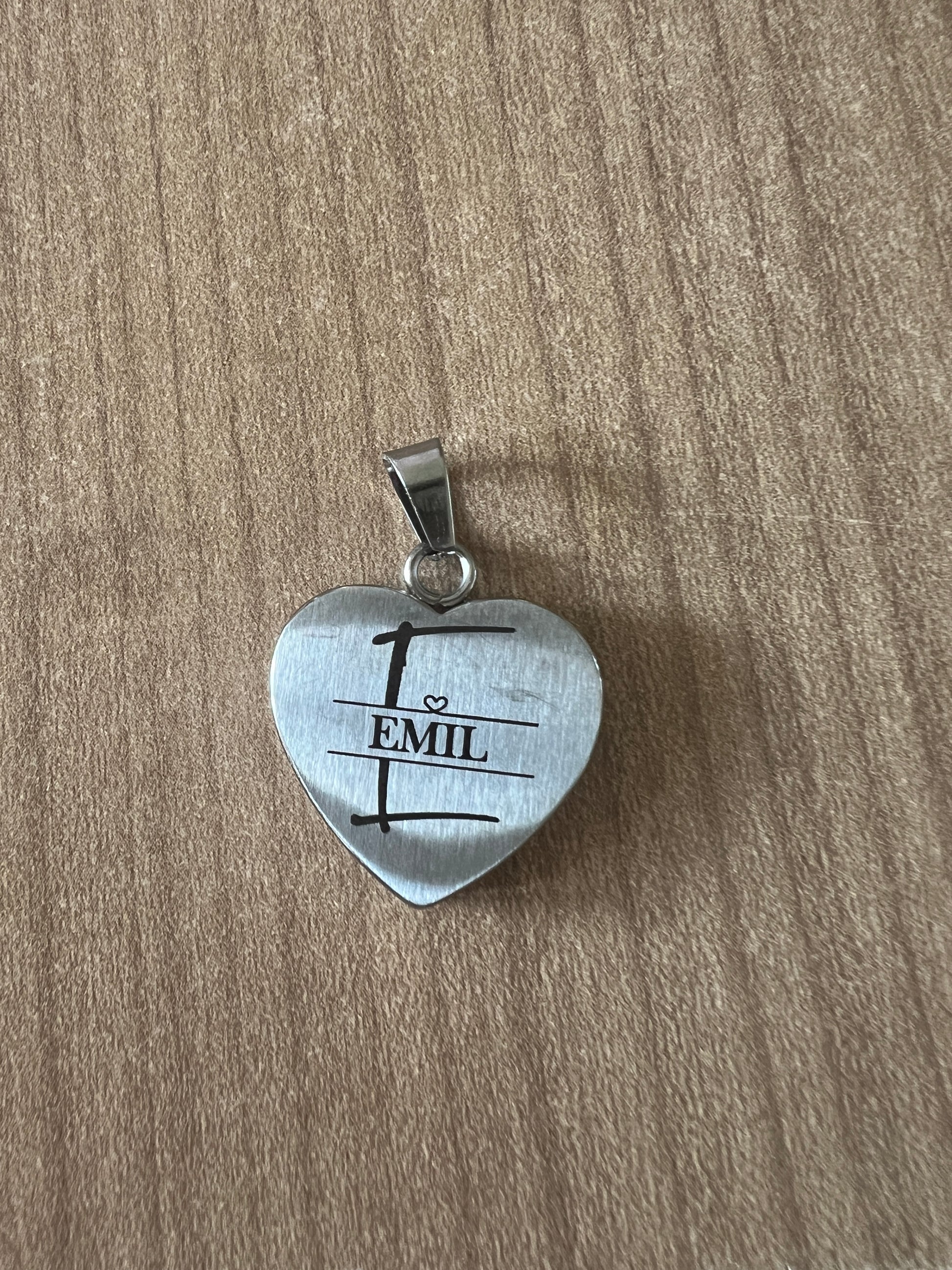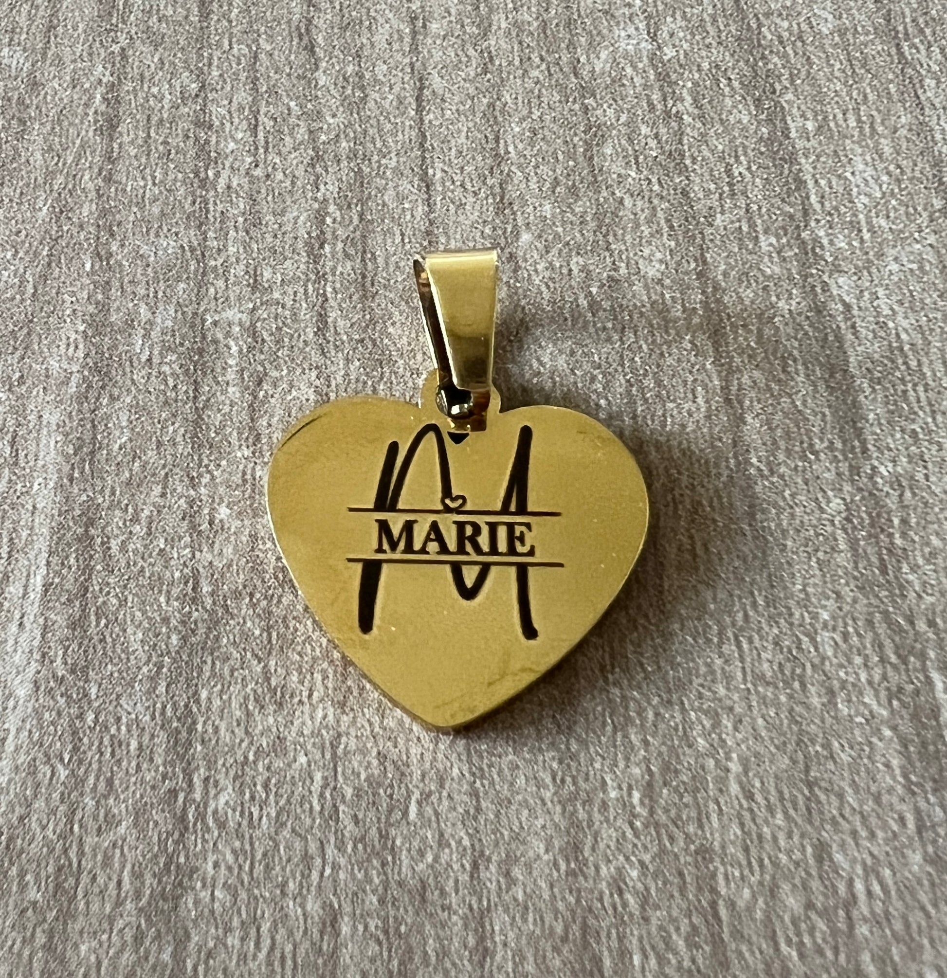 Herz Kettenanhänger graviert – Edelstahl personalisiert – Kindername, Initiale