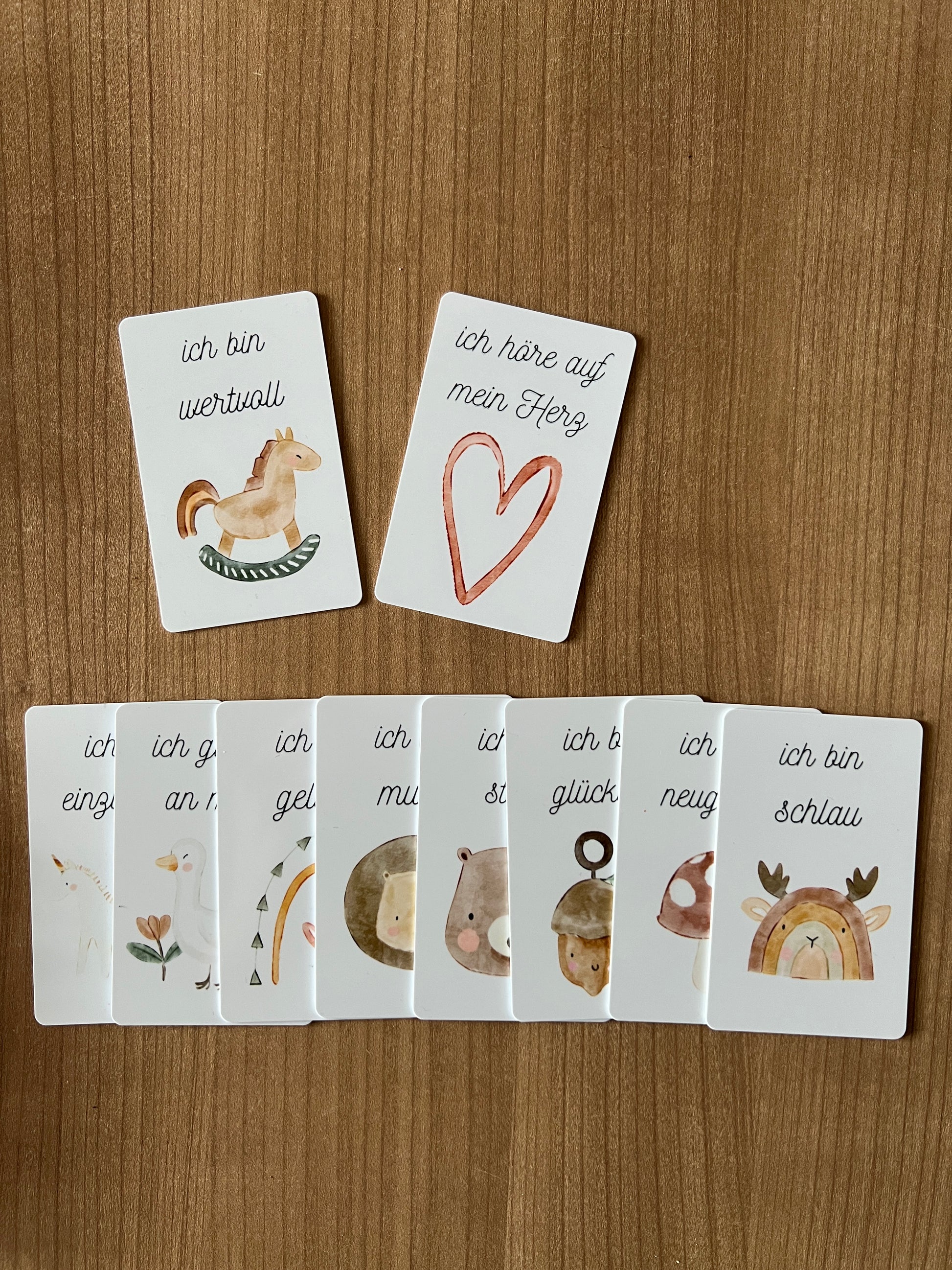 Diese stabilen und langlebigen Affirmationskarten begleiten Kinder im Alltag und schenken ihnen positive Gedanken. Jede Karte enthält eine liebevoll gestaltete Illustration und eine stärkende Botschaft wie „Ich bin mutig“, „Ich bin stark“ oder „Ich bin einzigartig“.