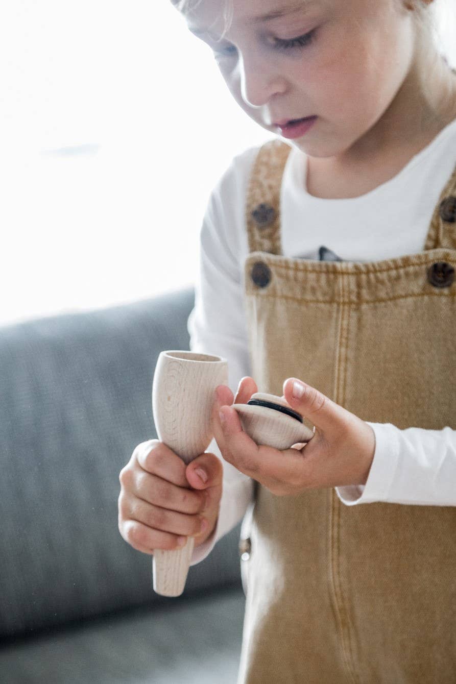 Frieda ist eine wunderbare Holzrassel zum selbst befüllen in Form einer Maracas. Begib Dich mit den Kindern auf eine musikalische Abenteuerreise. Sammelt verschiedene Materialen zum Befüllen. Diese findet ihr in der Natur, im Haushalt und in eurer Einrichtung. Bemalt die Musikrassel bunt und werdet gemeinsam kreativ. Befüllt sie mit den gefundenen Schätzen. So entdeckt ihr spielerisch die verborgenen Klänge eurer Umgebung.