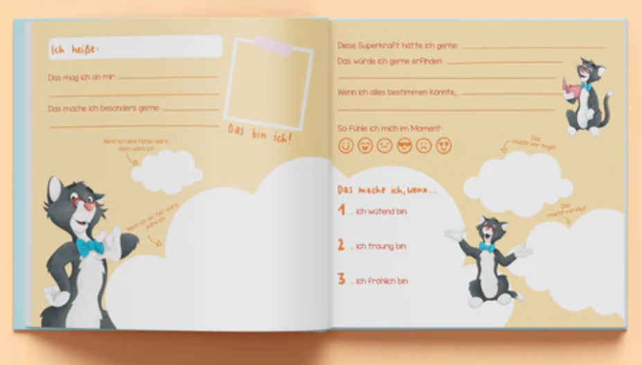 Bietet Platz für 20 FreundInnen (jedes Kind kann 4 Seiten befüllen und das Beste ist: MiRA, Kopernikus und Pieps haben auch schon reingeschrieben! :)