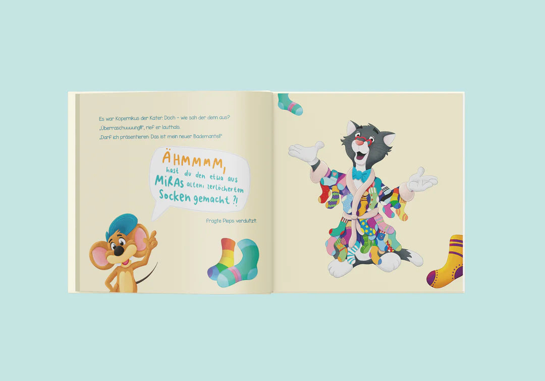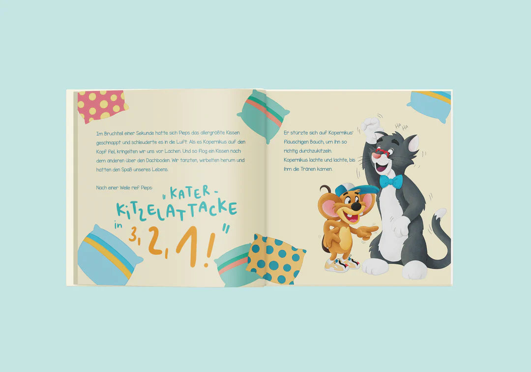 MIRA, Kopernikus und MC Pieps veranstalten eine mega coole Pyjama-Party auf dem Dachboden als Pieps plötzlich zur Kater-Kitzelattacke ansetzt und sich auf Kopernikus flauschigen Bauch stürzt. Der Kater hält sich den Bauch vor Lachen, doch plötzlich wird sein Gesicht ernst und er ruft: "Stop! Aufhören!"