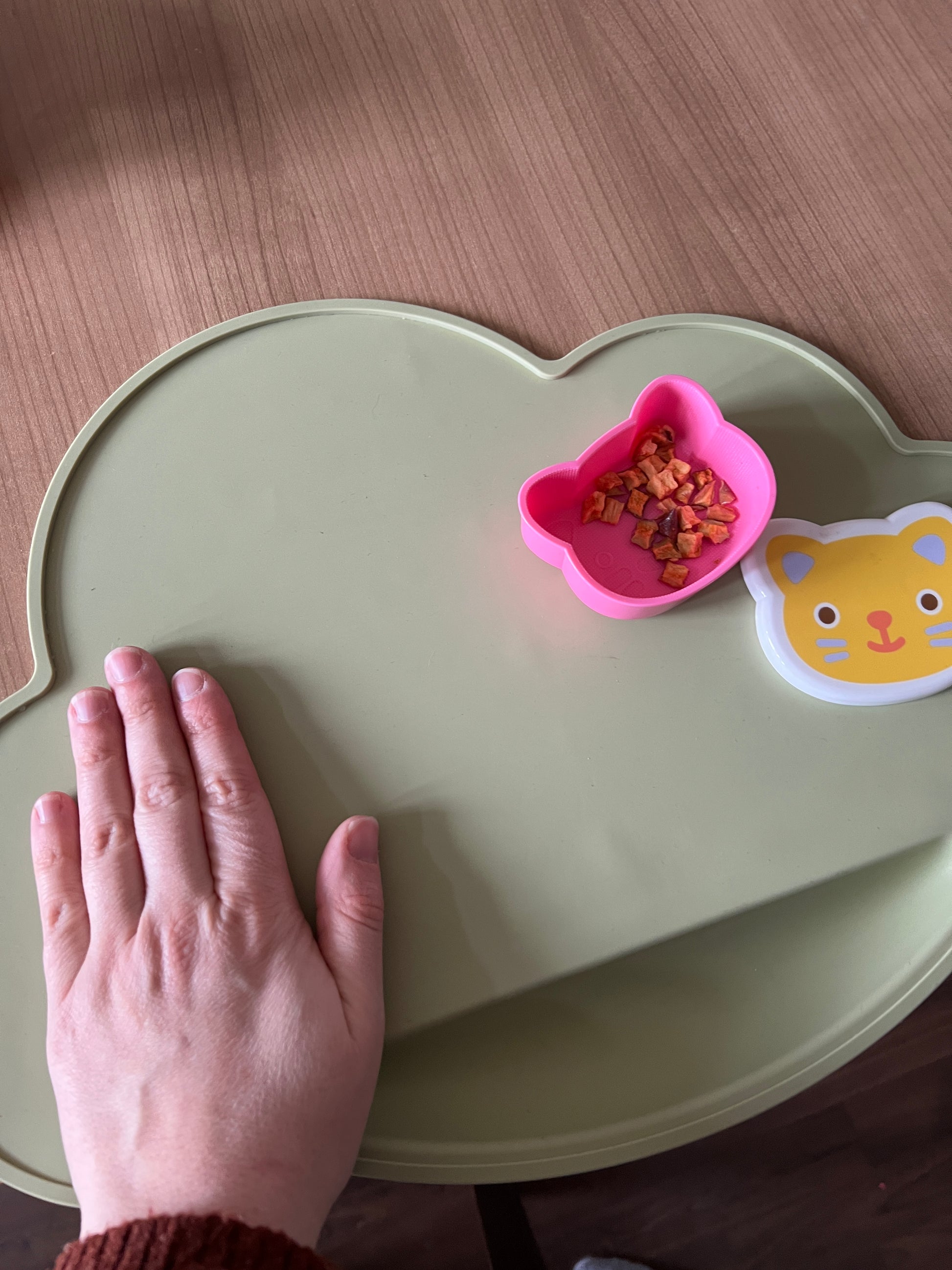 Wunderschöne BPAfreie Silikonunterlage für den Tisch mit kleiner Auffangschale.