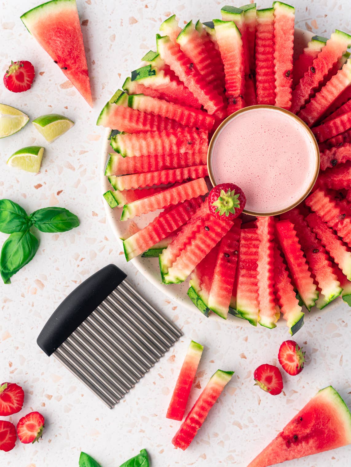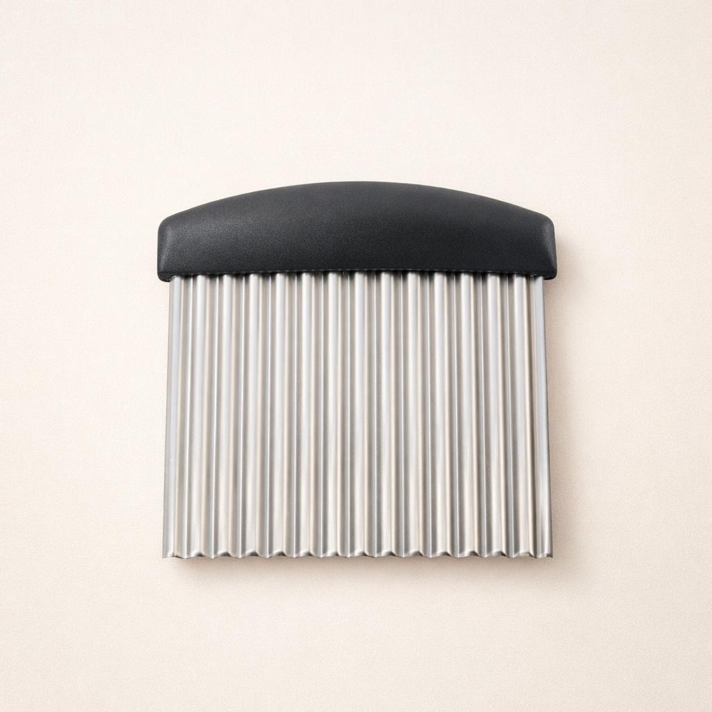 Mit dem Triangle Wellenschneider lassen sich Scheiben, Stifte oder Würfel in Zickzack-Optik herstellen. Geeignet sind Möhren, Gurken, Radieschen und Kohlrabi ebenso wie Äpfel, Melonen oder Papaya. Selbstgemachte Pommes Frites oder Butterecken sind mit diesem Werkzeug schnell und einfach hergestellt. Durch die Kraftführung von oben und die dünne Klinge gleitet der Wellenschneider einfach auch durch harte Gemüse und hinterlässt einen sehr sauberen, definierten Wellenschnitt.